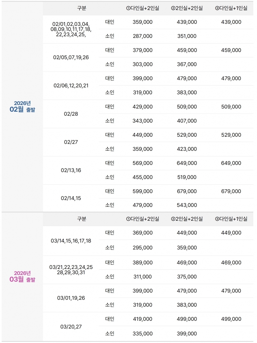 | ·출발일 | ~26년 03월 출발까지 / 연중 매일 출발 |