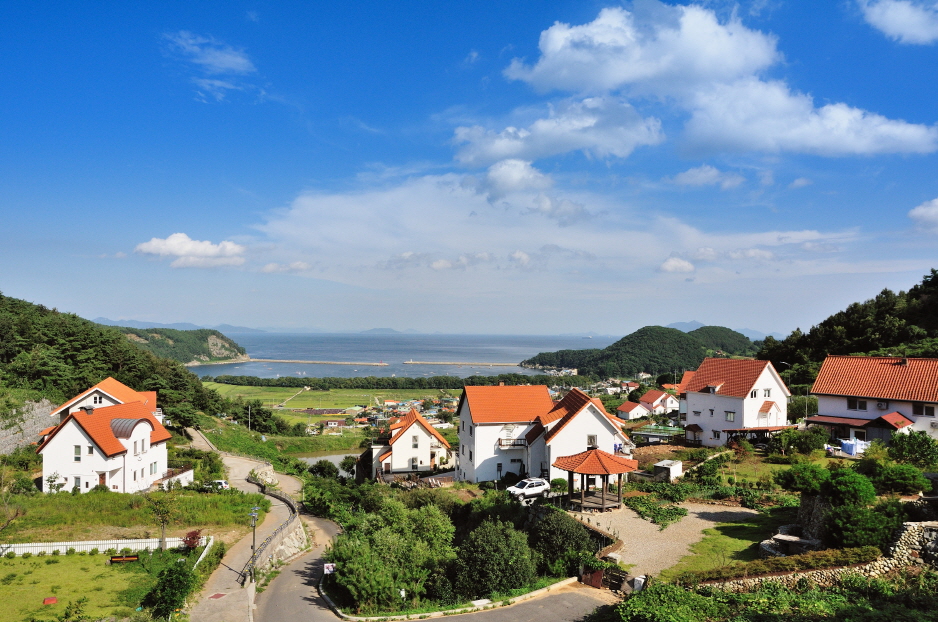 1960년대 어려운 시기에 조국 근대화와 경제발전에 헌신한 독일 거주 교포들의 정착생활 지원과 조국의 따뜻한 정을 느낄 수 있는 삶의 터전을 마련해 주고 독일의 이국 문화와 전통문화예술촌을 연계한 특색 있는 관광지 개발을 위하여 지난 2001년부터 천연기념물이 있는 남해군 삼동면 물건리 일원 99,174m²(30,000여 평)의 부지에 남해군에서 30여억 원을 들여 기반을 조성하여 70여 동을 지을 수 있는 택지를 분양하였다. 건축은 교포들이 직접 독일의 재료를 수입하여 전통 독일식 주택을 건축하고 있는데 독일 교포들이 생활하고 있으며 독일에 가 있는 동안은 관광객을 위한 민박을 운영하고 있기도 하다. 바로 앞으로 펼쳐진 방조어부림의 시원한 바다와 남해안에서 가장 아름다운 해안 드라이브 코스인 물미해안도로가 있다.