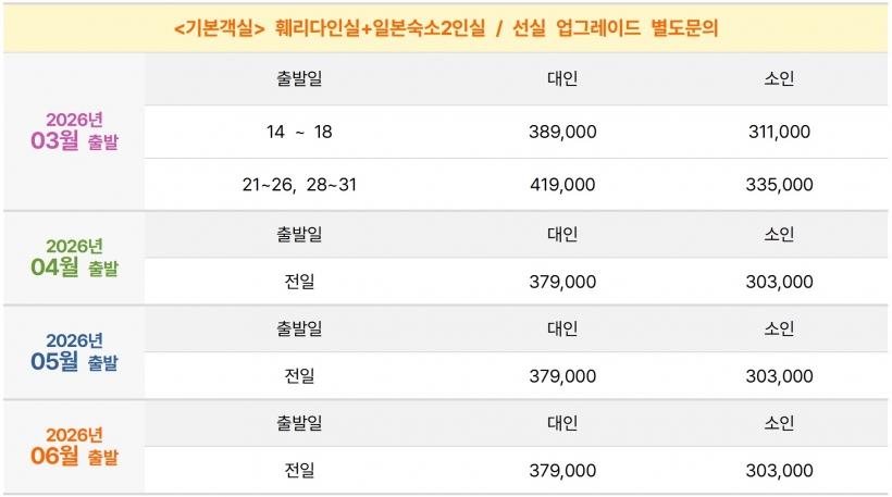| ·출발일 | 연중 월,화,수,목,금,일 출발 |