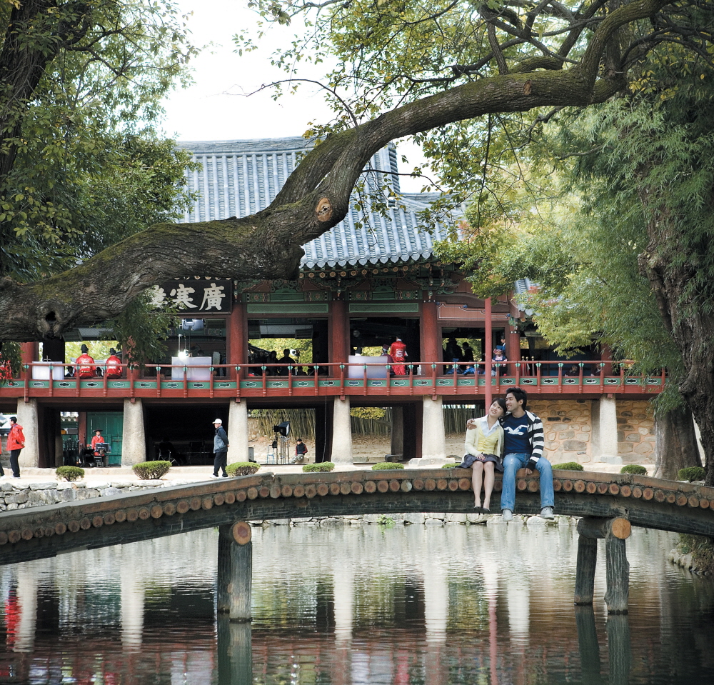 누원의 북쪽으로는 교룡산이 우뚝 서 있고, 남쪽에는 금괴같이 보배롭다는 금암봉이 있으며 멀리 지리산이 보인다. 광한루원은 은하수를 상징하는 연못가에 월궁을 상징하는 광한루와 지상의 낙원인 삼신산이 함께 어울려 있는 아득한 우주관을 표현한 한국 제일의 누원이며, 경회루, 촉석루, 부벽루와 함께 우리나라 4대 누각에 속한다. 광한루원 안에는 광한루, 오작교, 완월정, 영주각, 춘향관, 춘향사당, 월매집이 있고 이외에도 공예품점, 카페 등의 부속시설이 있다. 연지에는 지상의 낙원을 상징하는 연꽃을 심고, 견우와 직녀가 은하수에 가로막혀 만나지 못하다가 칠월칠석날 단 한번 만난다는 사랑의 다리 오작교를 연못 위에 설치하였다. 이 돌다리는 4개의 무지개 모양의 구멍이 있어 양쪽의 물이 통하게 되어 있으며, 한국 정원의 가장 대표적인 다리이다. 춘향사당에는 김은호 화백이 그린 춘향의 영정을 모셔 놓았다. 해마다 음력 5월 5일 단오절에는 춘향제가 열린다. |