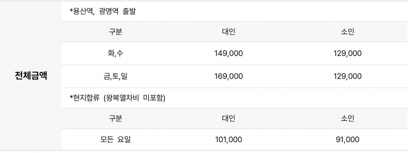 | ·모이는 장소 | 출발 20분 전 용산역 3층(대합실 내) 여행센터 앞 피켓 미팅 |
