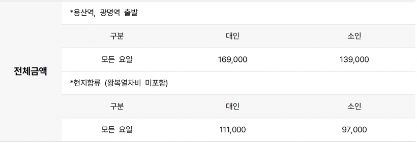 | ·모이는 장소 | 출발20분전 용산역3층 여행센타앞 피켓 미팅 |