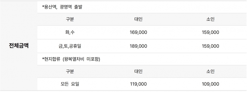 | ·모이는 장소 | 출발 20분 전 용산역 3층 여행센터 앞 피켓 미팅 |