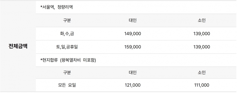 | ·출발일 | 26년 3월 10일 ~ 26년 5월 31일 / 화,수,금,토,일,공휴일 |