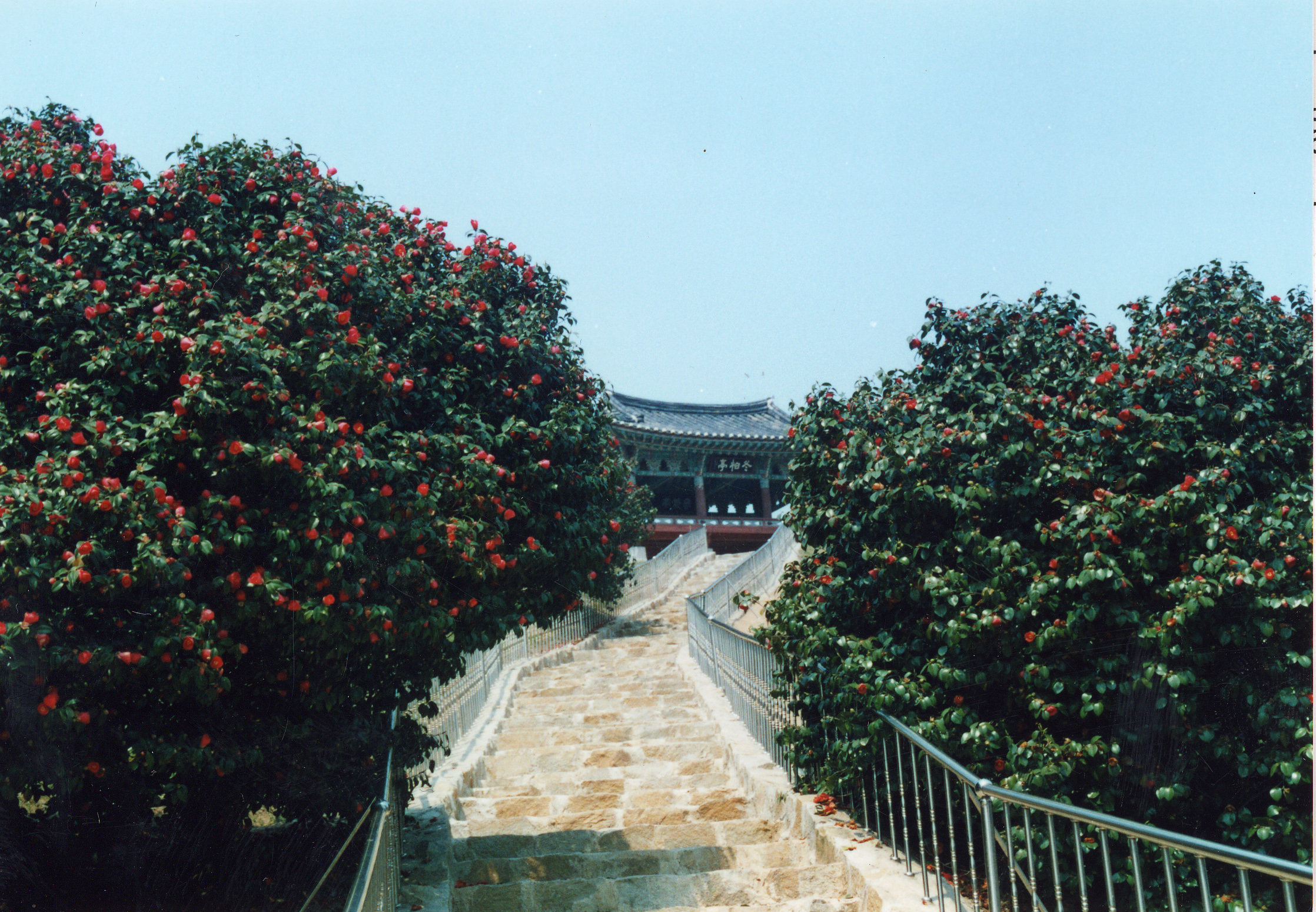 [마량리 동백정 (동백나무숲 군락지)] - 동백꽃이 피는 가장 최북단의 마량리 동백정 - 동백나무숲을 지나 정상에 있는 동백정에서 바라보는 확 트인 서해바다의 절경 - 꽃봉오리째 떨어지는 동백꽃의 신비함과 아름다움 서천 마량리 동백나무 숲