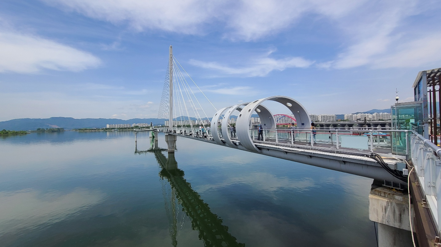 소양강 스카이워크 관람 - 북한강 위로 시원하게 뻗은 소양강 스카이워크는 전체 길이가 174m, 그중 바닥이 투명 강화유리로 된 구간이 무려 156m에 이르는곳 - 2019년 열린관광지, 바로옆 춘천 랜드마크라 불리는 소양강처녀상까지 관람 가능 소양강스카이워크