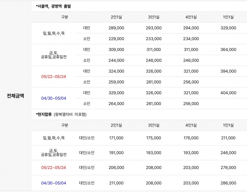 | ·출발일 | 연중 매일 출발 |