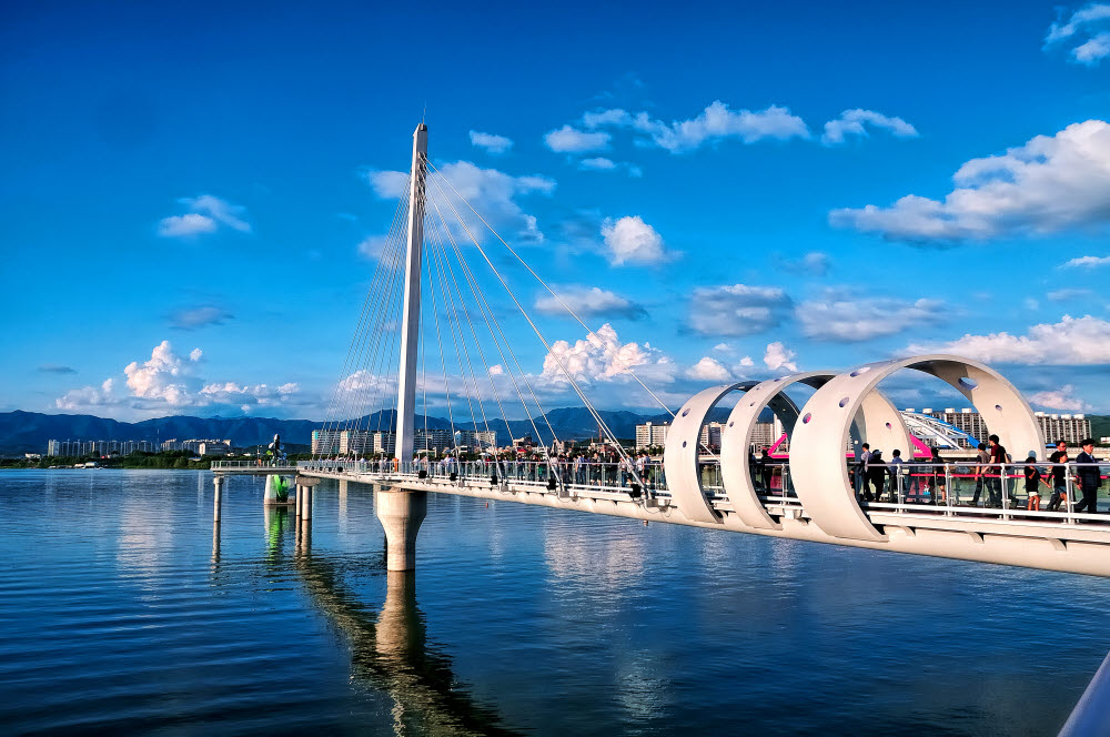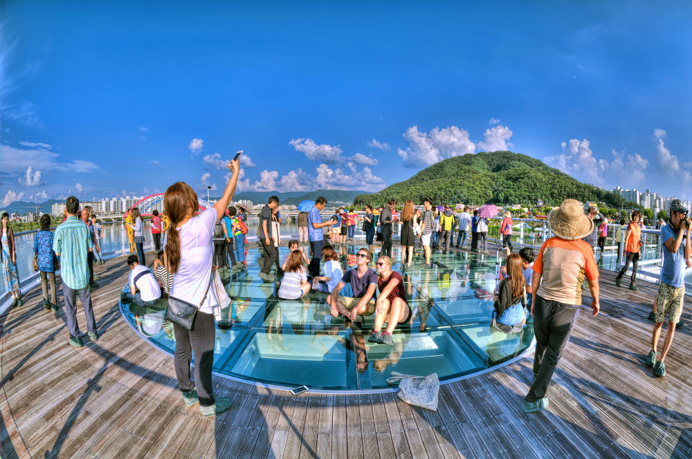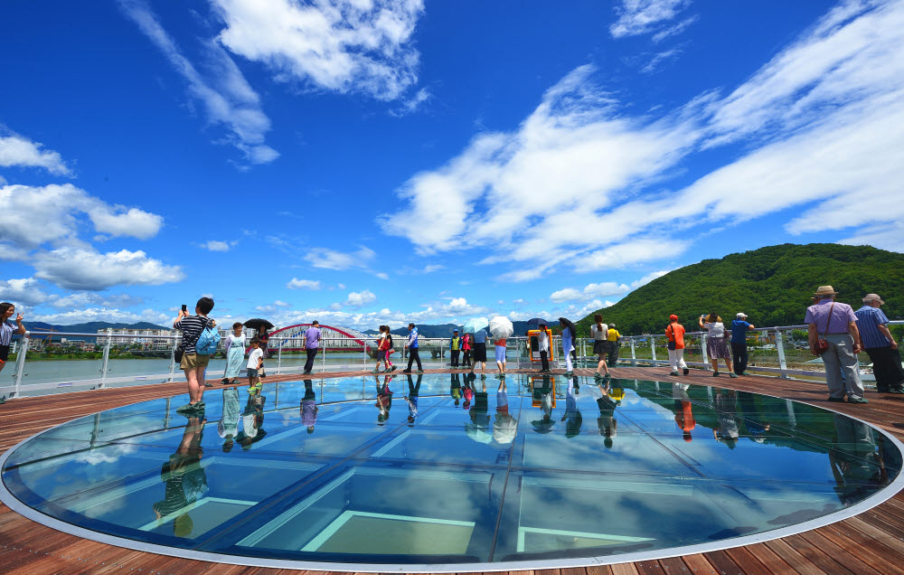 소양강 스카이워크 관람 - 북한강 위로 시원하게 뻗은 소양강 스카이워크는 전체 길이가 174m, 그중 바닥이 투명 강화유리로 된 구간이 무려 156m에 이르는곳 - 2019년 열린관광지, 바로옆 춘천 랜드마크라 불리는 소양강처녀상까지 관람 가능 소양강스카이워크