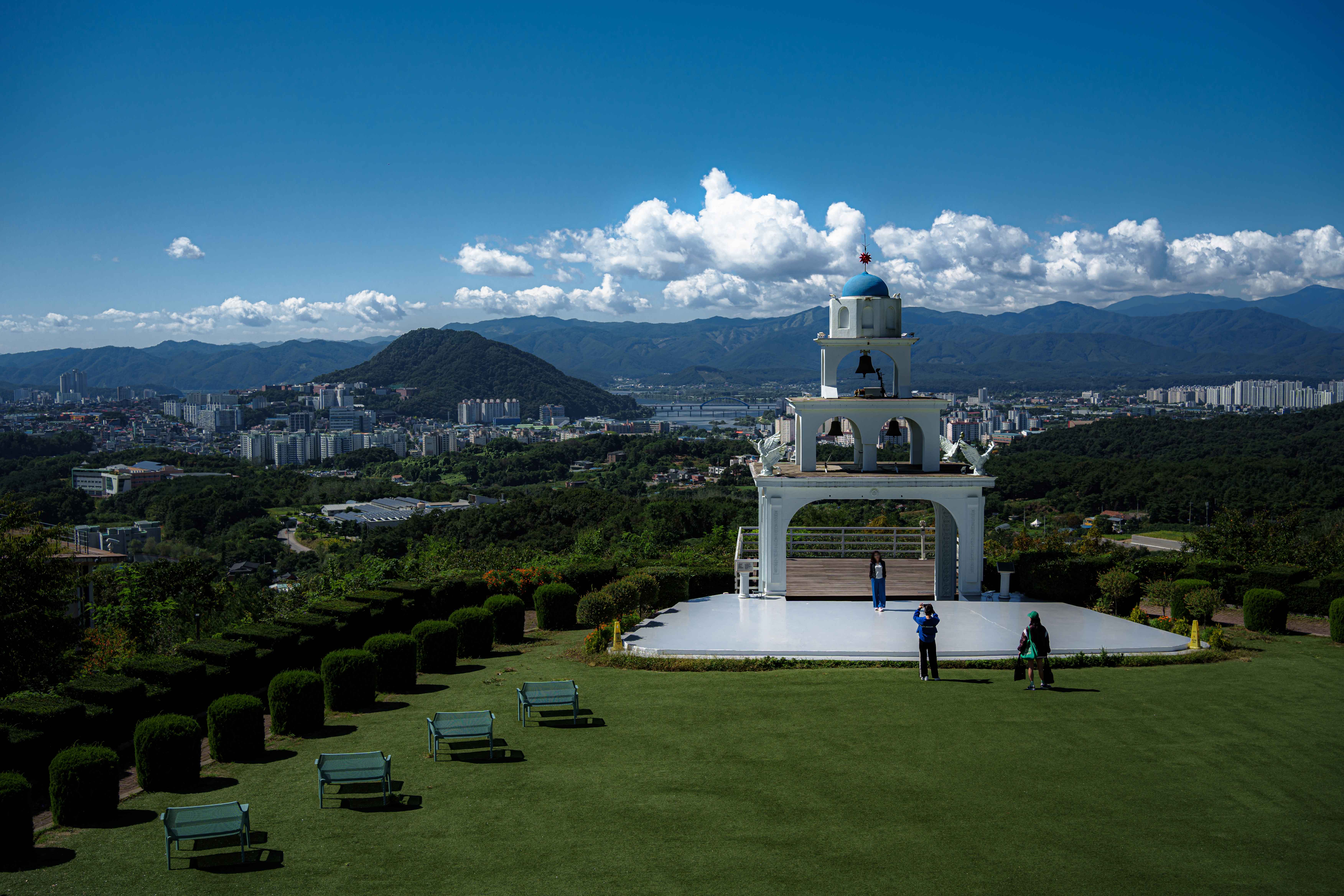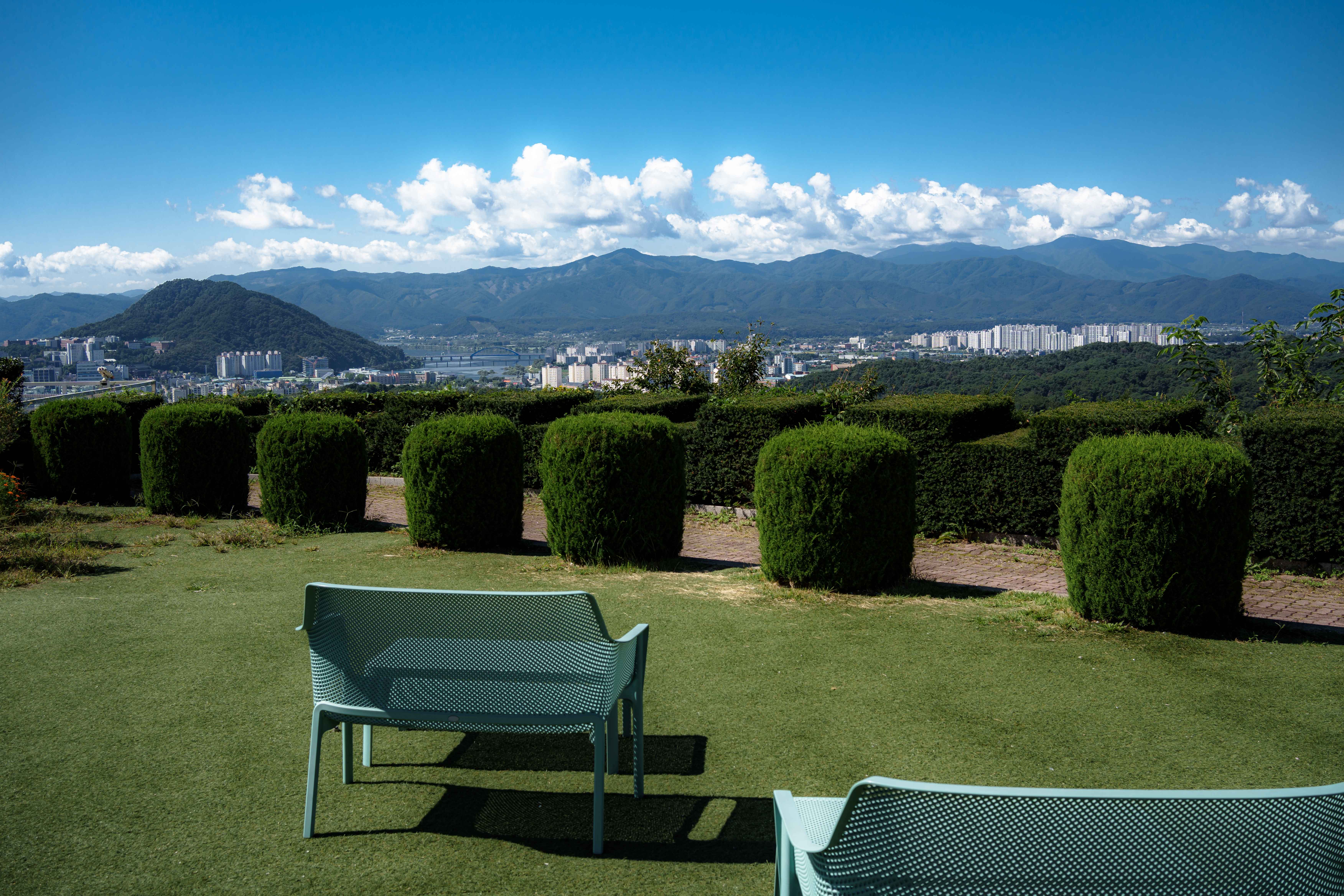 구봉산 전망대 카페거리 구경 - 이국적인 포토존과 탁 트인 전망! 춘천의 풍광을 한눈에 담을 수 있는 곳 - 1990년대 구봉산 중턱을 지나는 도로가 생기면서 카페와 음식점이 들어서기 시작 |